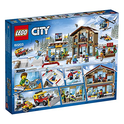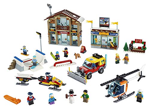 - Includes 11 LEGO® City minifigures: 3 ski patrol members, a ski shop clerk, helicopter pilot, skier, snowboarder, 2 kids, hot drinks stand clerk and a customer, plus dog and buildable snowman figures.
